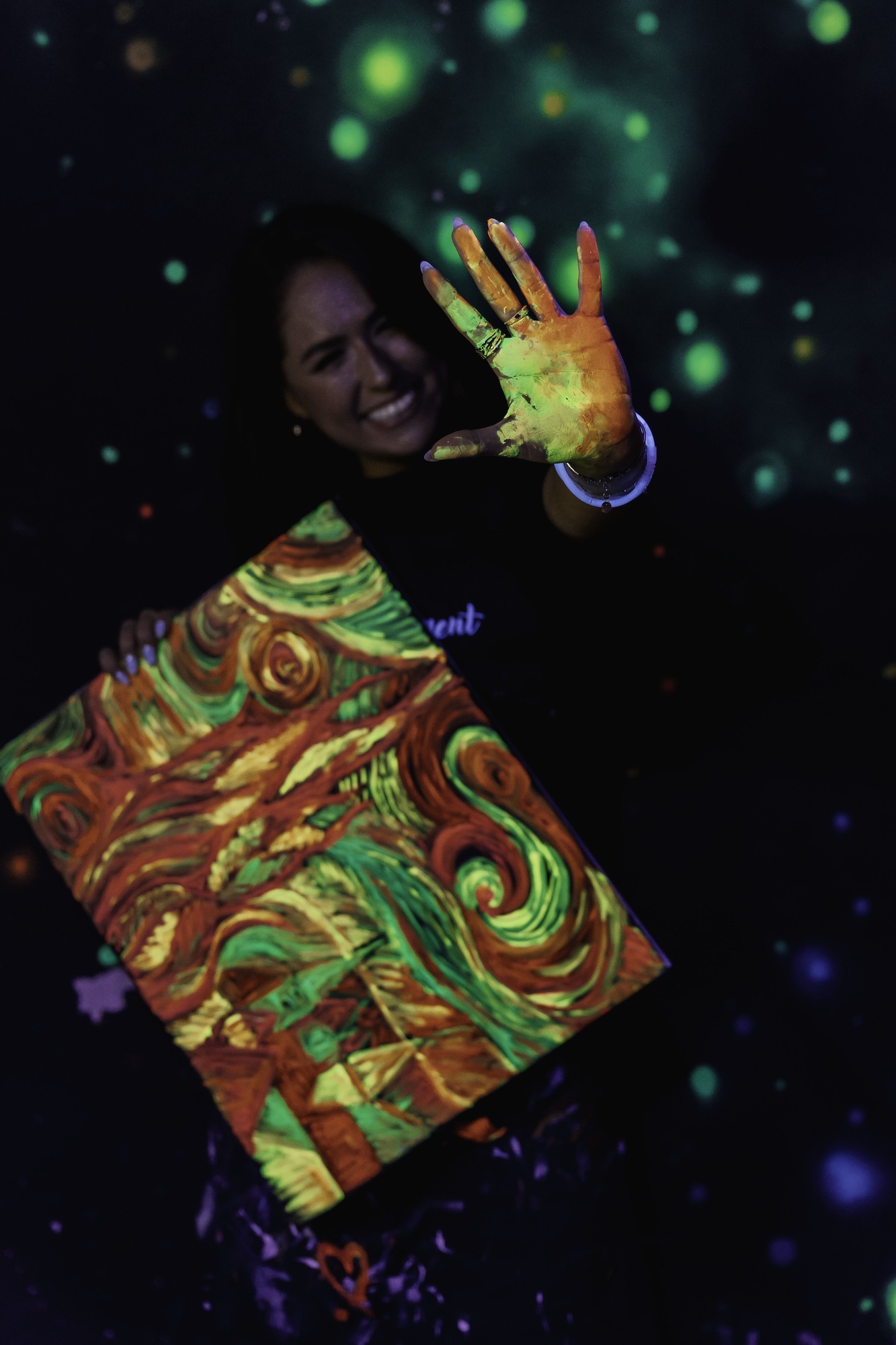 Přijďte na ArtNeon a vyzkoušejte si nový neobvyklý zážitek malování ve tmě. Pomocí speciálních svítících barev spolu se zkušenými lektory vytvoříte obraz jako z kouzelné říše divů! Zážitek se hodí pro úplné začátečníky i ostřílené umělce.