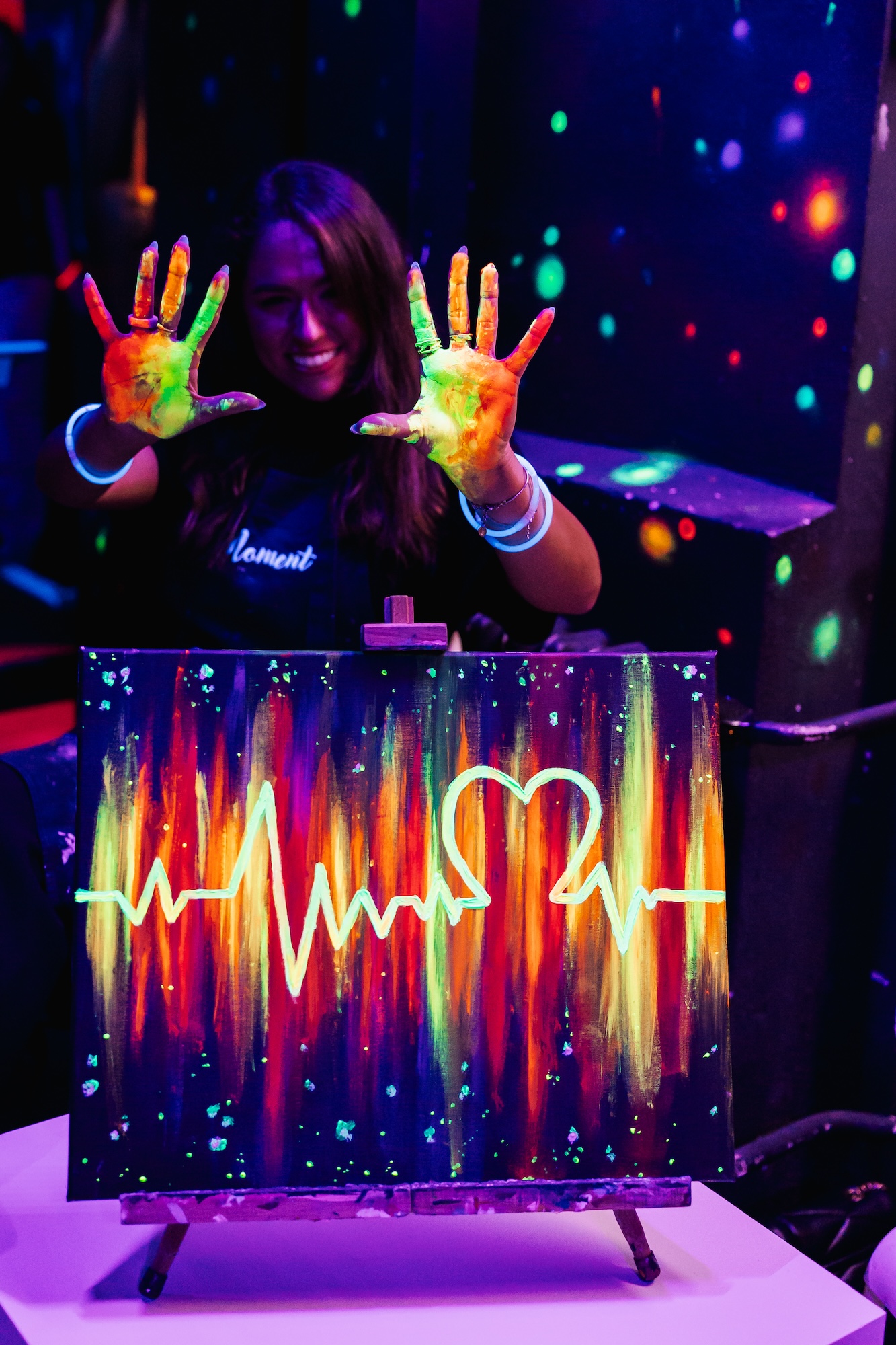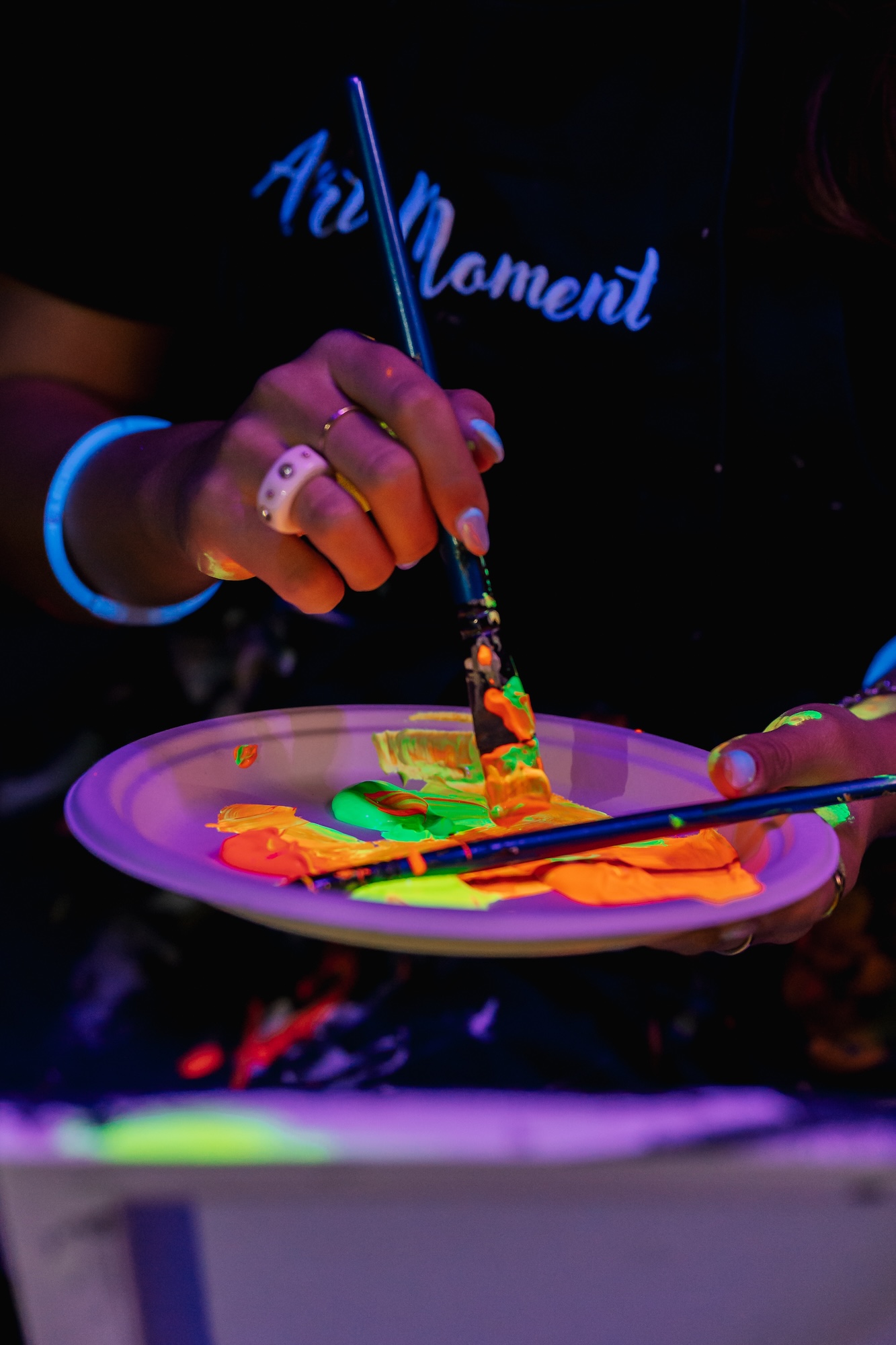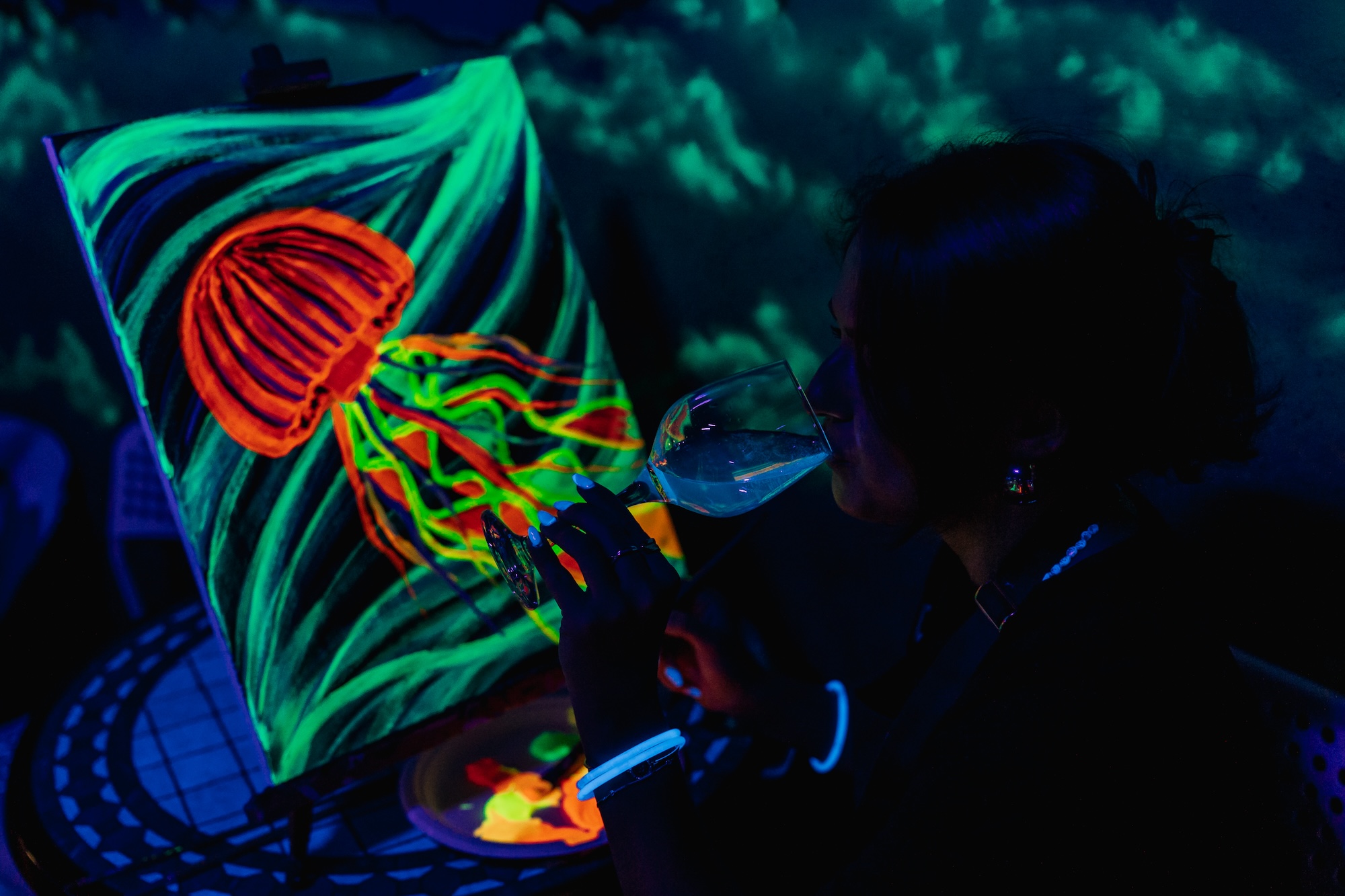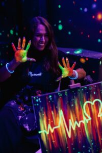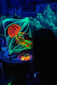 Klasické malování se štětci a barvami na plátno? Ne tak docela! Na ArtNeon vás čeká kreativní hra barev, světel a tmy. Neonové malování probíhá téměř v úplném šeru pod jemným UV světlem. Za použití barev s luminiscenčními pigmenty vytvoříte vlastní obraz, který se ve tmě efektně rozzáří. Užijte si luxusní zážitek plný umění i pohodové atmosféry.